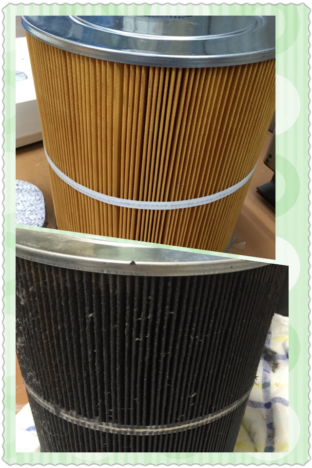 上が新品のフィルター。下は交換したフィルター。