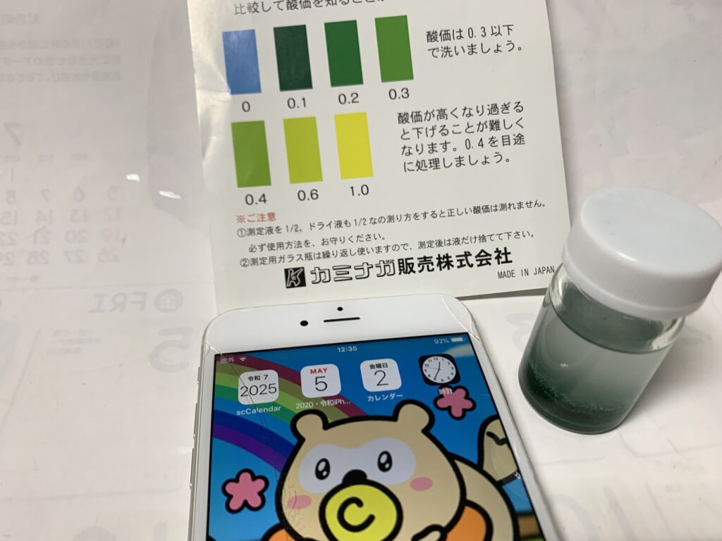 今月のドライクリーニング溶剤の酸価値(クリーニングショップ タナカヤ)
